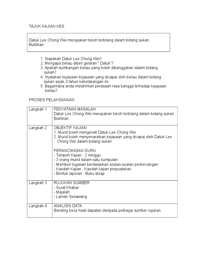 Lee chong wei tarikh lahir : Pemain badminton perseorangan negara pendidikan : Datuk lee chong wei sememangnya merupakan suatu ikon kejayaan malaysia, terutamanya pada masa kini. Sukan mampu memberikan pendapatan yang lumayan setimpal dengan tahap pencapaian mereka. Pada tahun 2004, lee berjaya memburu dua kejuaraan terawalnya di terbuka malaysia dan terbuka china taipei.